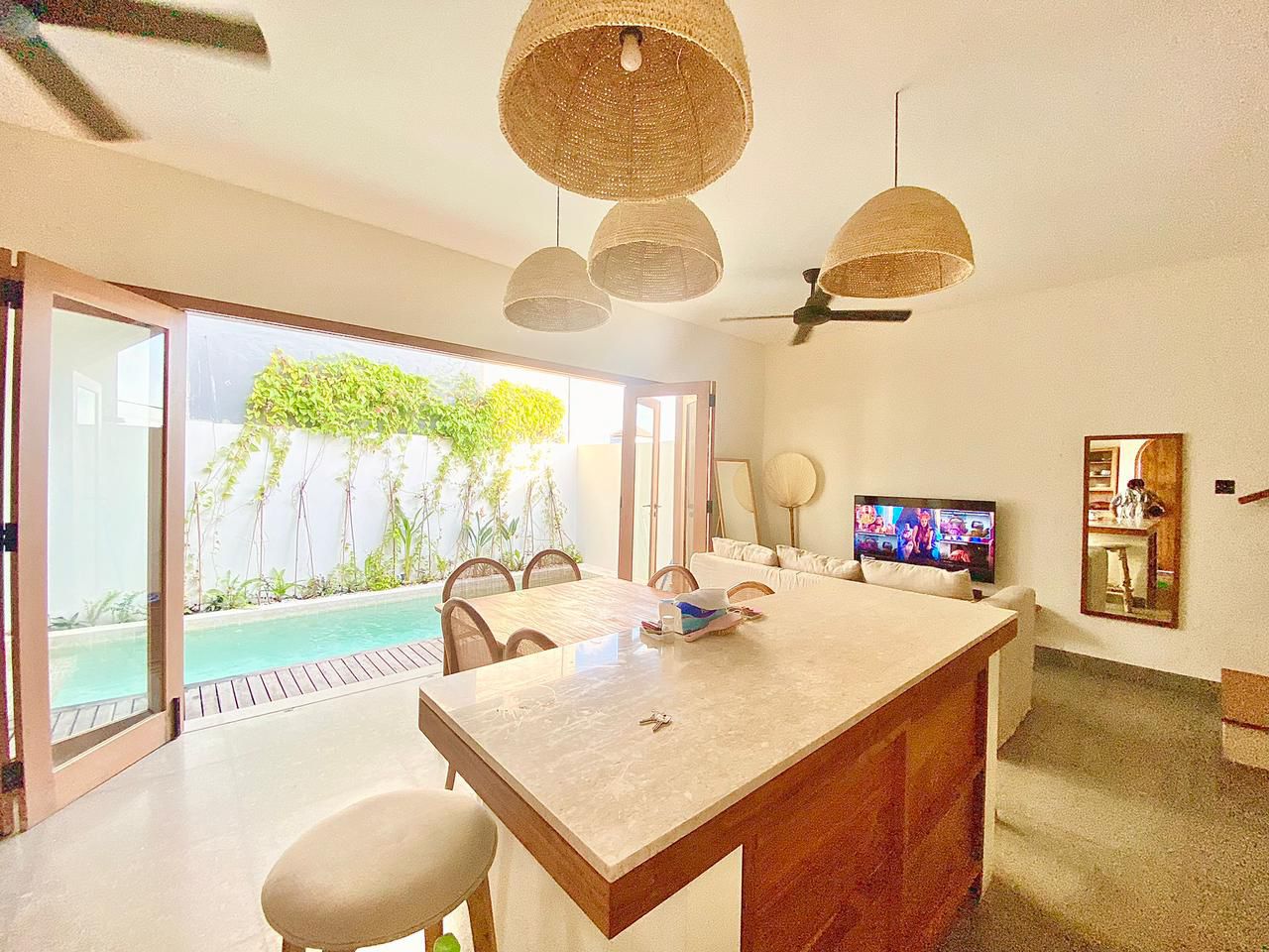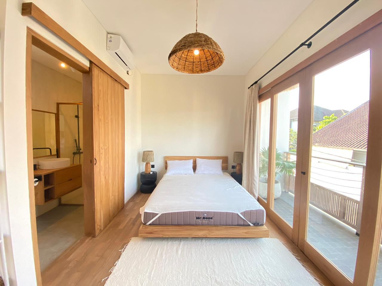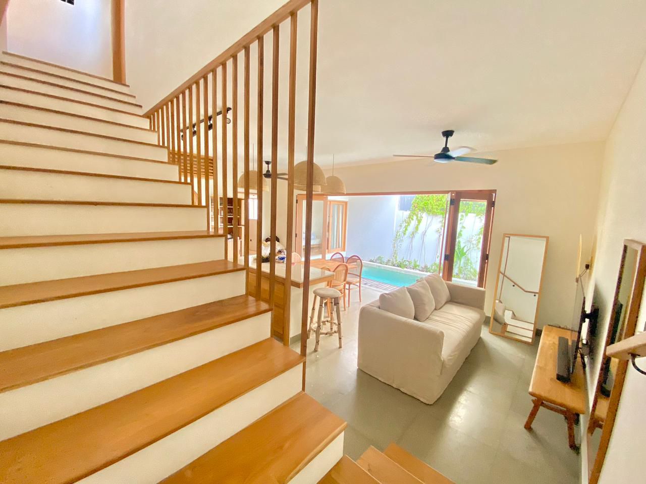BB370 – Modern 3-bedroom villa in Tumbak Bayuh, available for monthly and yearly rent. Featuring spacious bedrooms with en-suite bathrooms (one with a bathtub), an enclosed living room, and fully furnished interiors for comfortable living.
