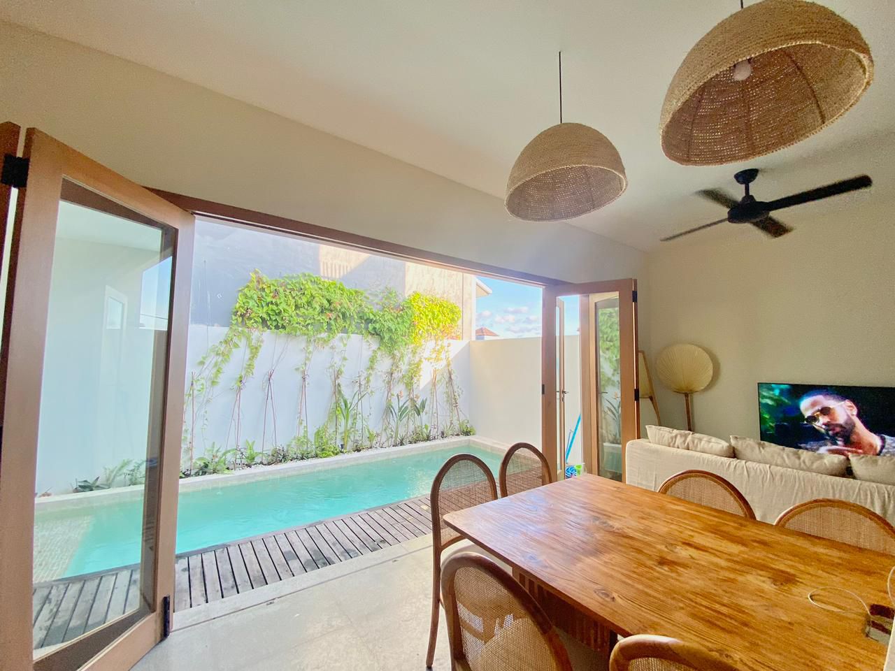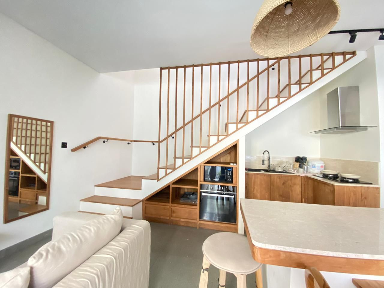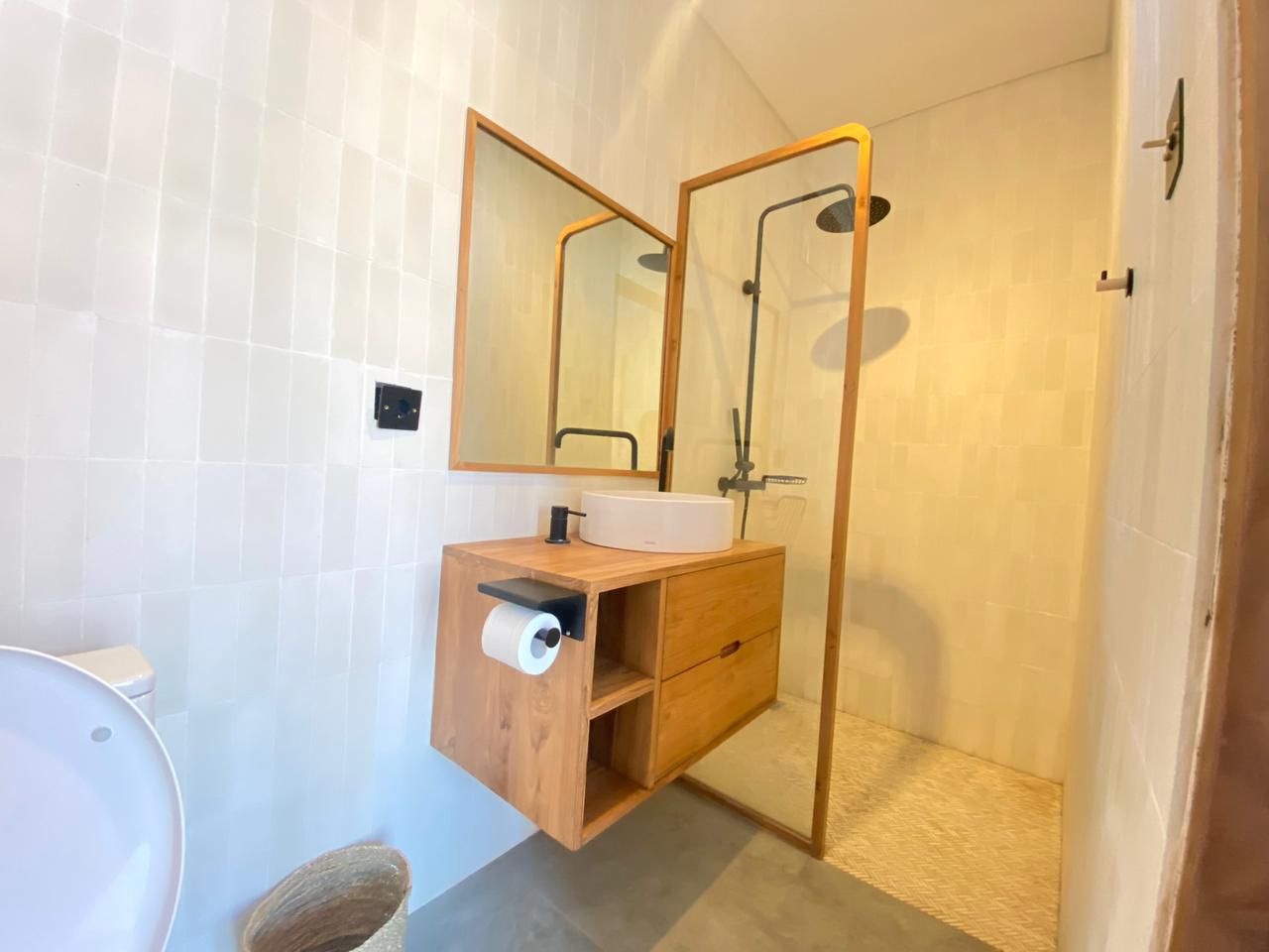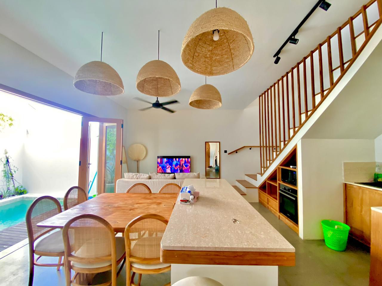 BB370 – Modern 3-bedroom villa in Tumbak Bayuh, available for monthly and yearly rent. Featuring spacious bedrooms with en-suite bathrooms (one with a bathtub), an enclosed living room, and fully furnished interiors for comfortable living.
